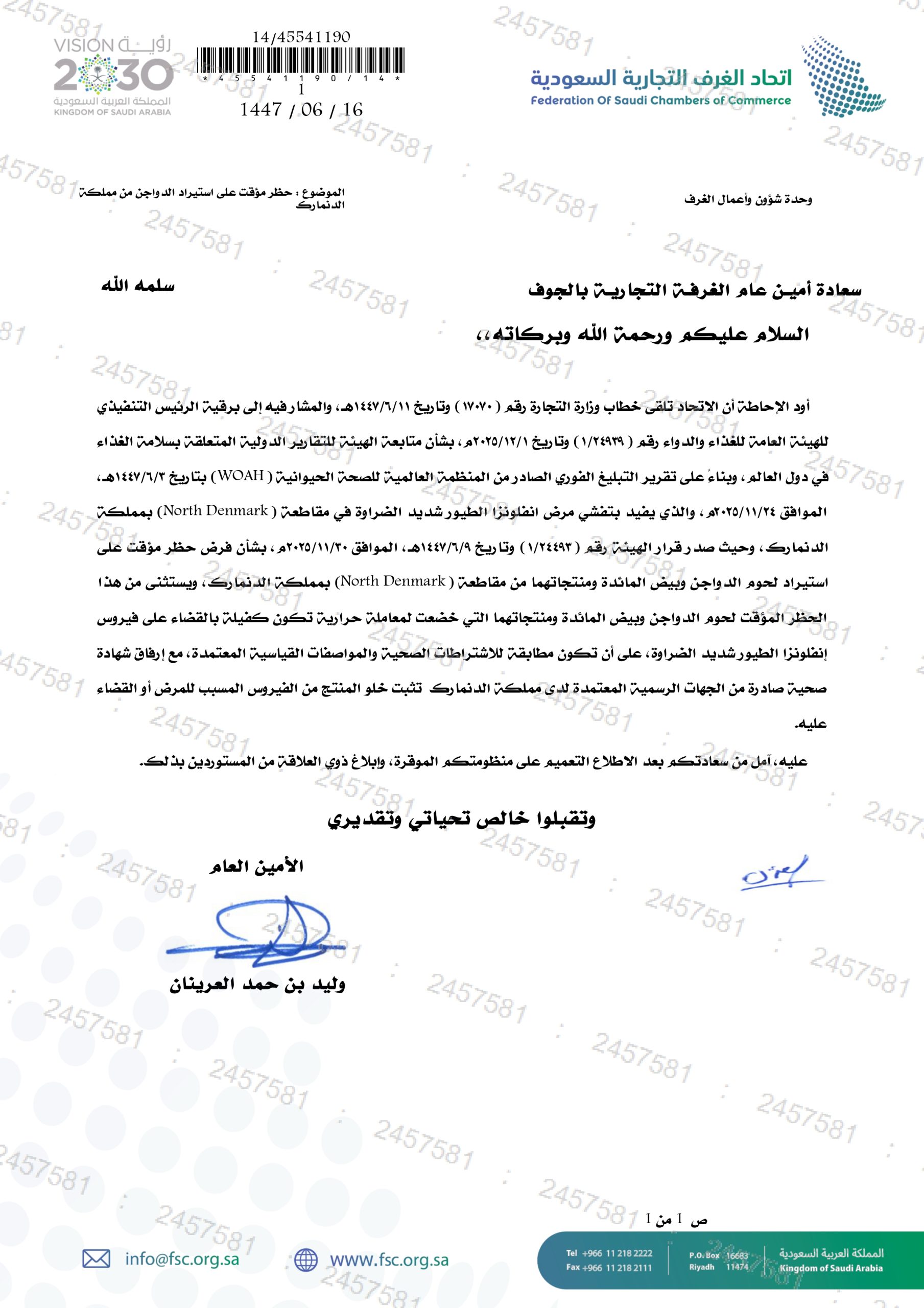 (العربية) حظر مؤقت على استيراد الدواجن من مملكة الدنمارك