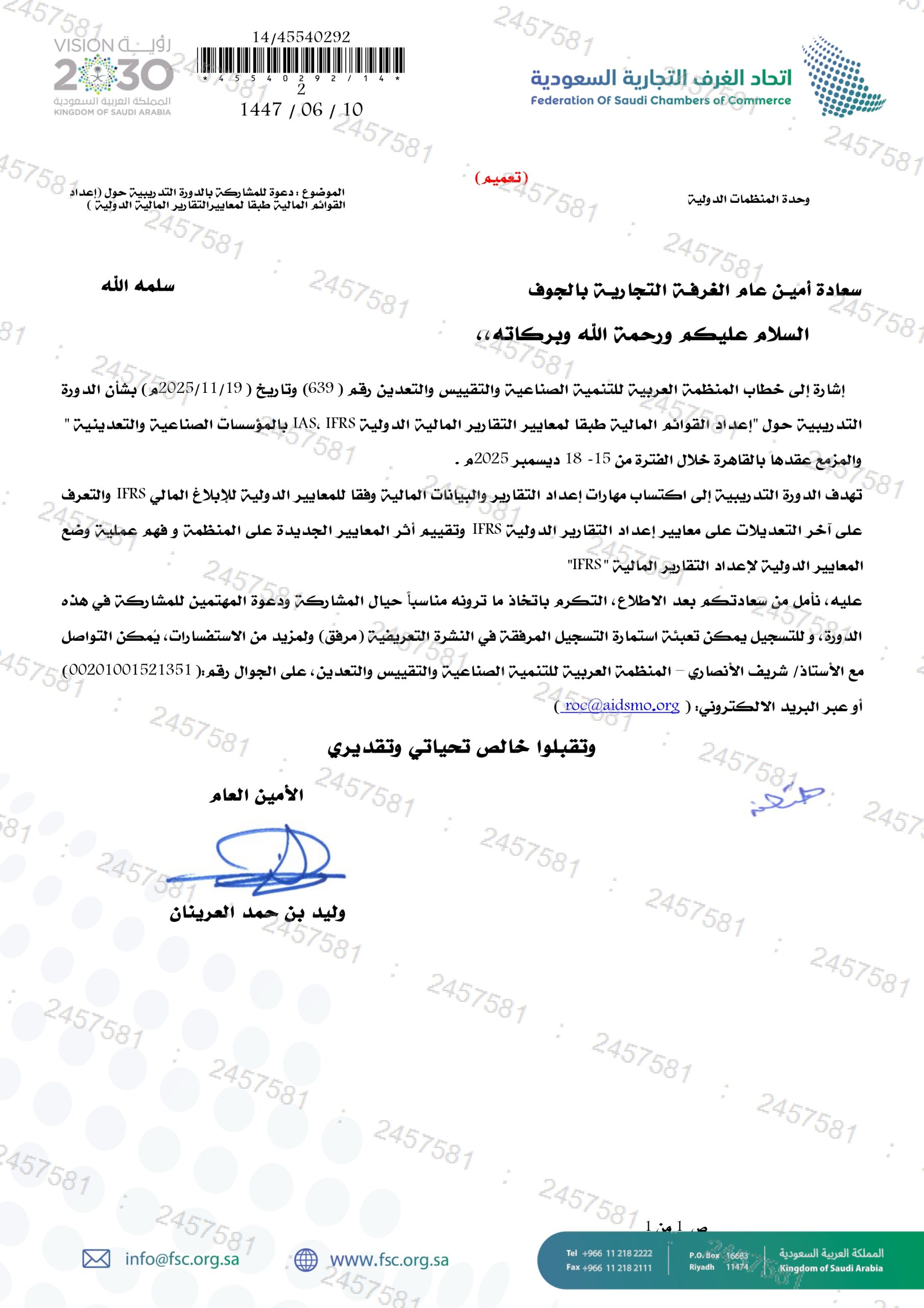 (العربية) دعوة للمشاركة بالدورة التدريبية حول (إعداد القوائم المالية طبقا لمعايير التقارير المالية الدولية)