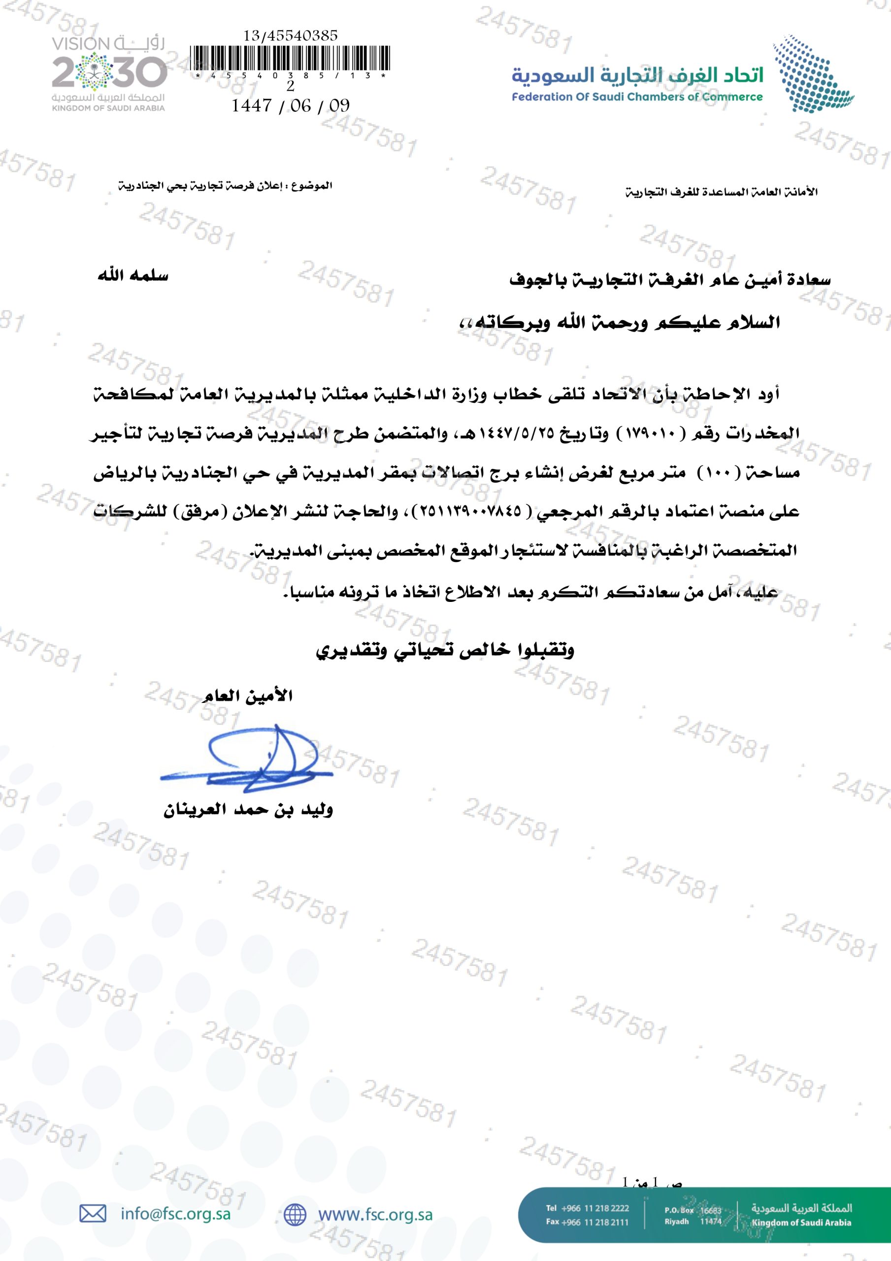 (العربية) ﺇﻋﻼﻥ ﻓﺮﺻﺔ ﺗﺠﺎﺭﻳﺔ ﺑﺤﻲ ﺍﻟﺠﻨﺎﺩﺭﻳﺔ