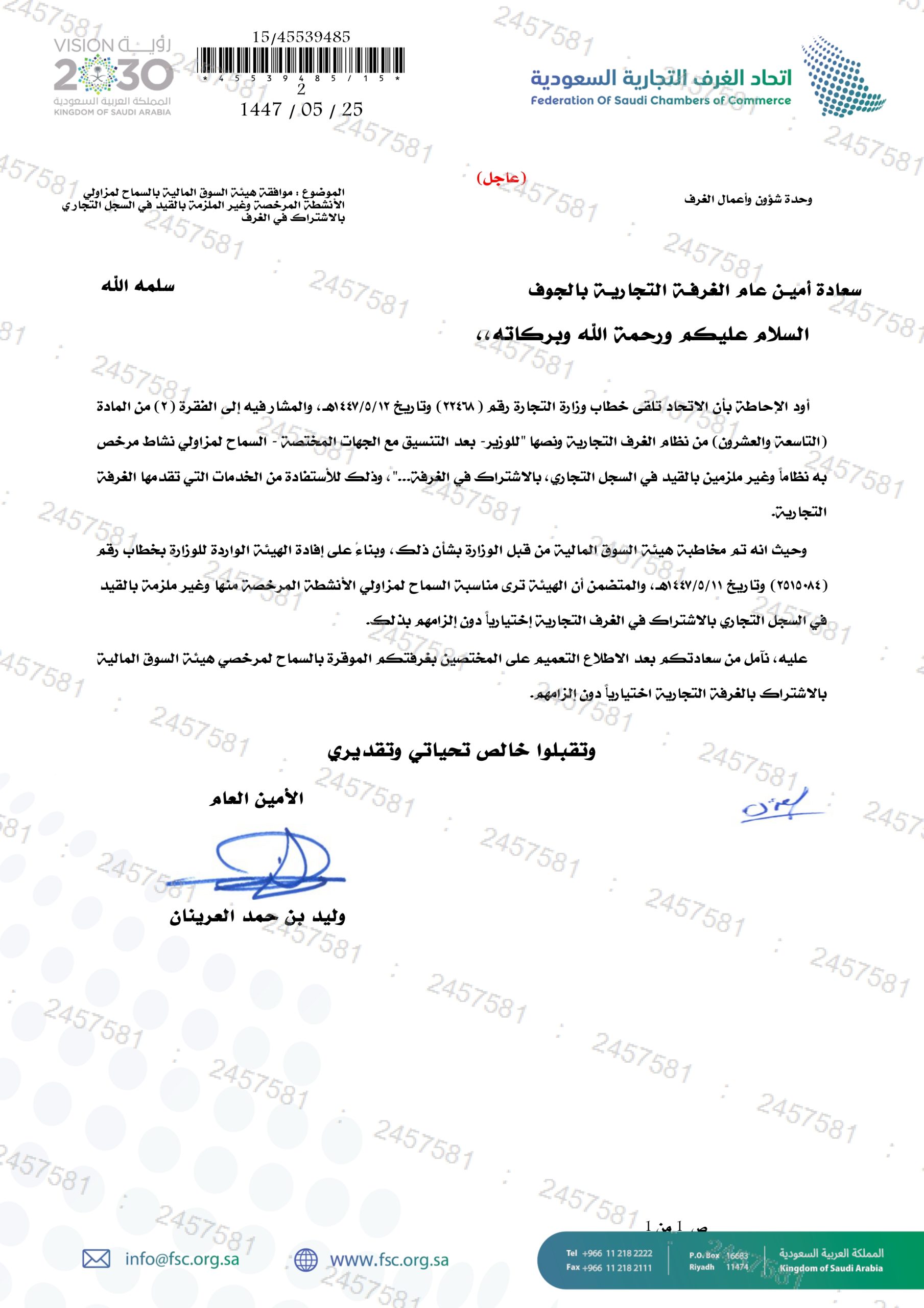 (العربية) موافقة هيئة السوق المالية بالسماح لمزاولي الأنشطة المرخصة وغير الملزمة بالقيد في السجل التجار ي بالاشتراك في الغرف