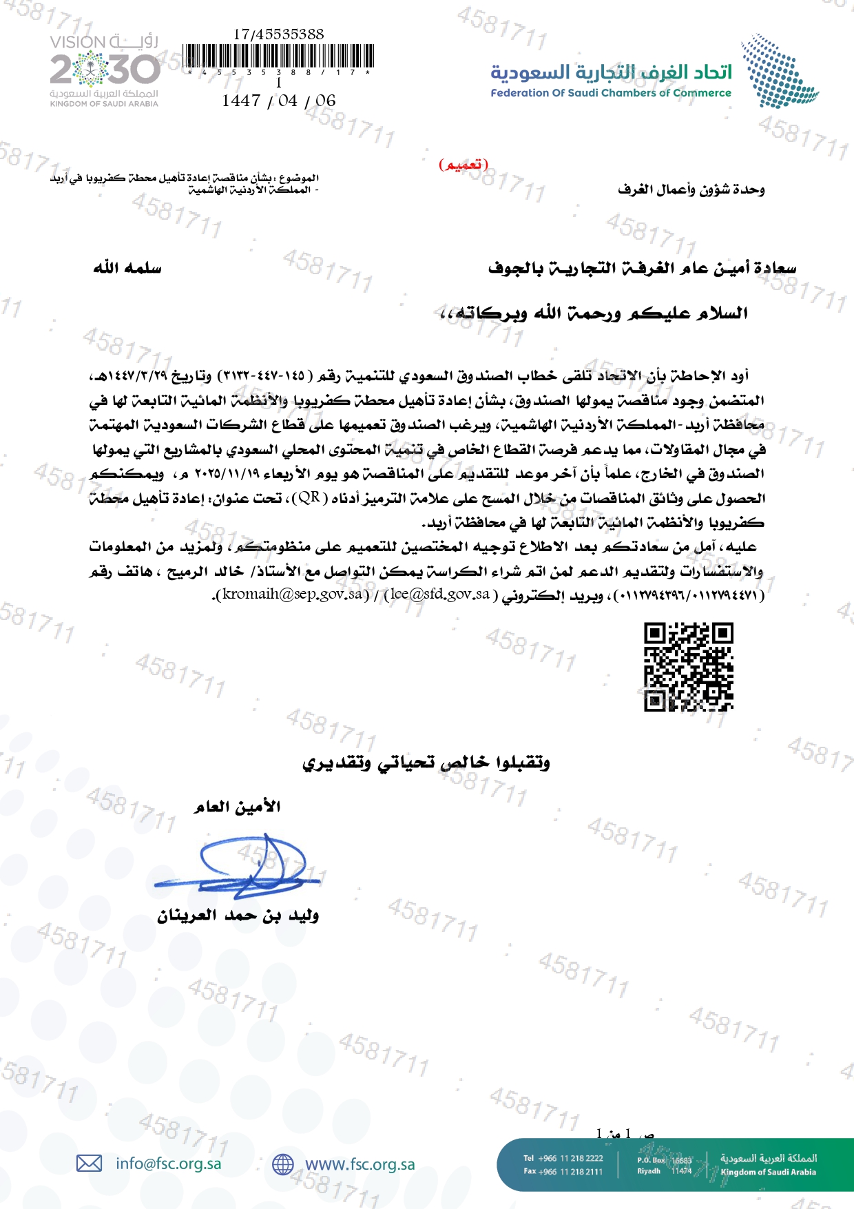 (العربية) بشأن وجود مناقصة تأهيل محطة يمولها الصندوق السعودي للتنمية في المملكة الأردنية الهاشمية