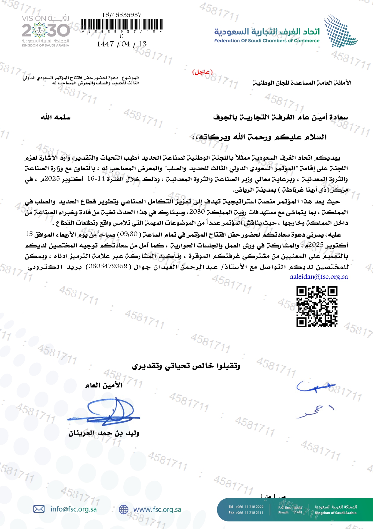 (العربية) دعوة لحضور حفل افتتاح المؤتمر السعودي الدولي الثالث للحديد والصلب والمعرض المصاحب له