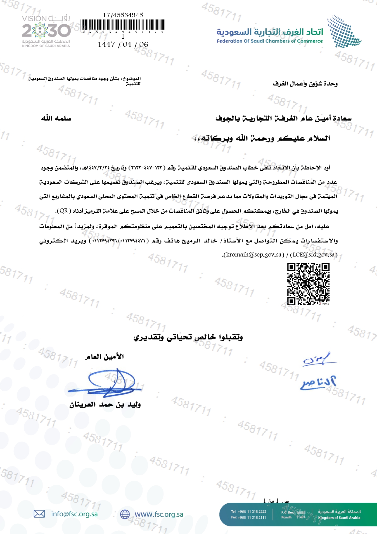 (العربية) بشأن وجود مناقصات يمولها الصندوق السعودي للتنمية في المملكة الأردنية وجمهورية باكستان