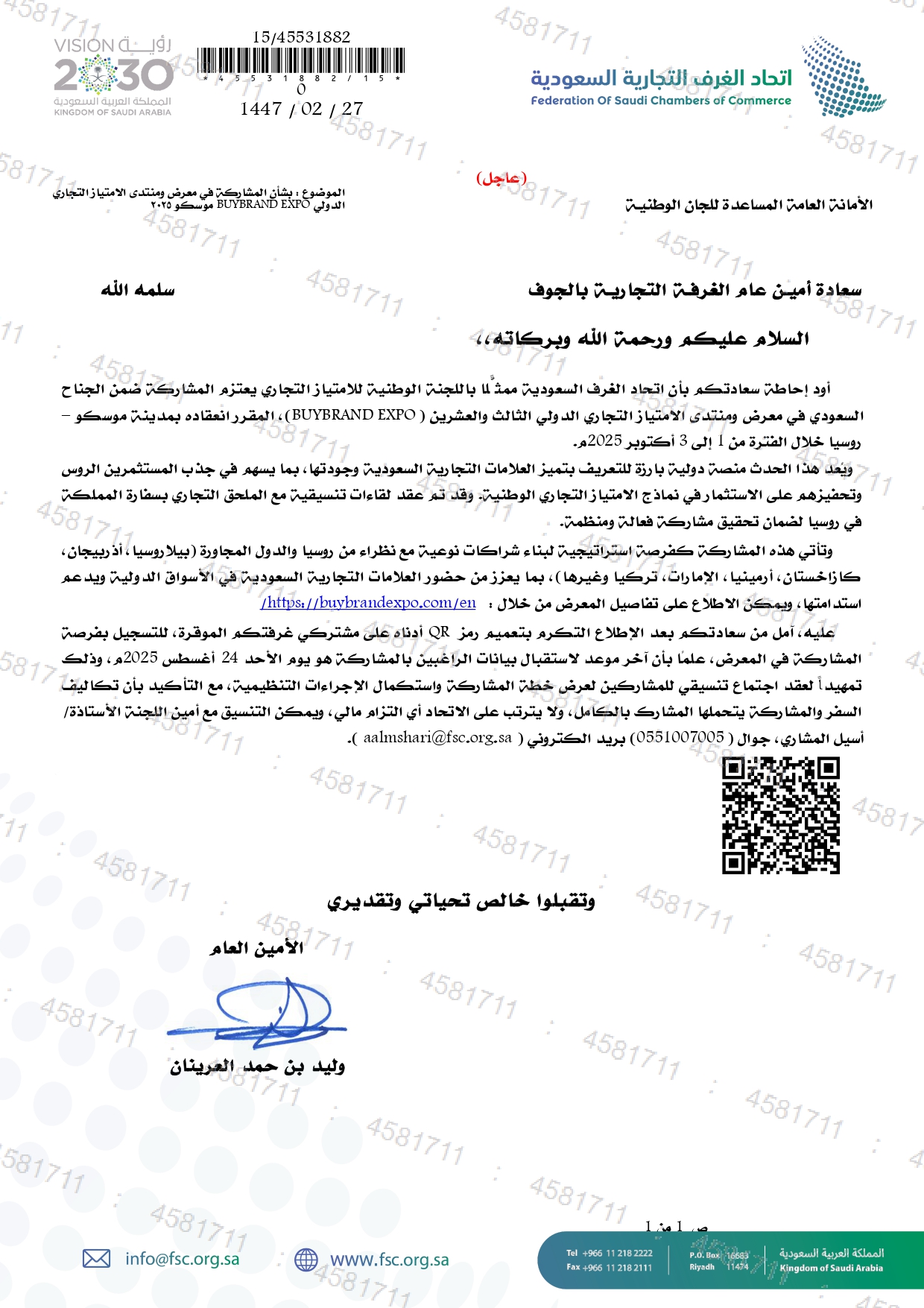 (العربية) بشأن المشاركة في معرض ومنتدى الامتياز التجاري الدولي BUYBRAND EXPO "موسكو ٢٠٢٥"