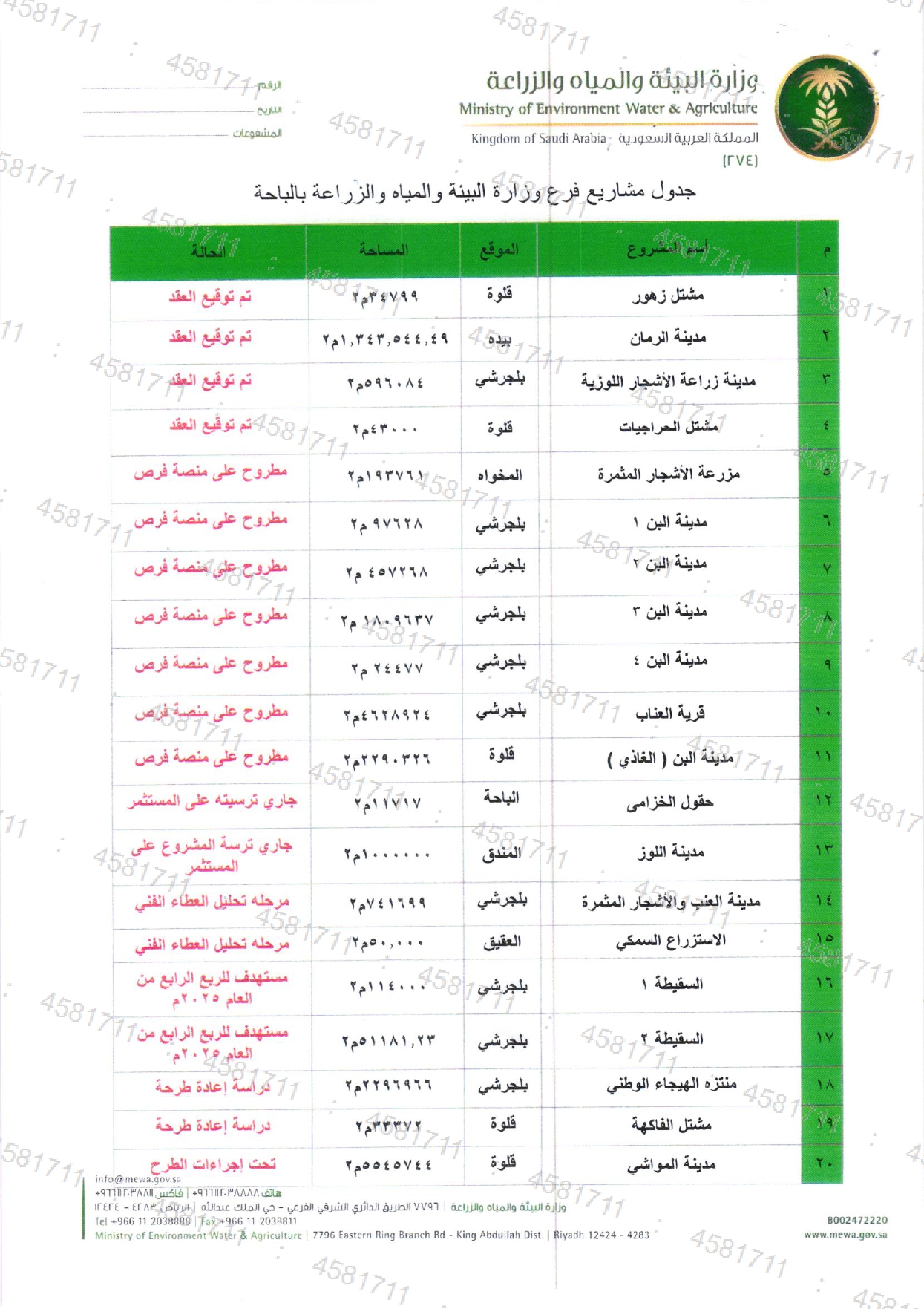 (العربية) بيان محدث عن المدن والمشاريع الزراعية - بمنطقة الباحة