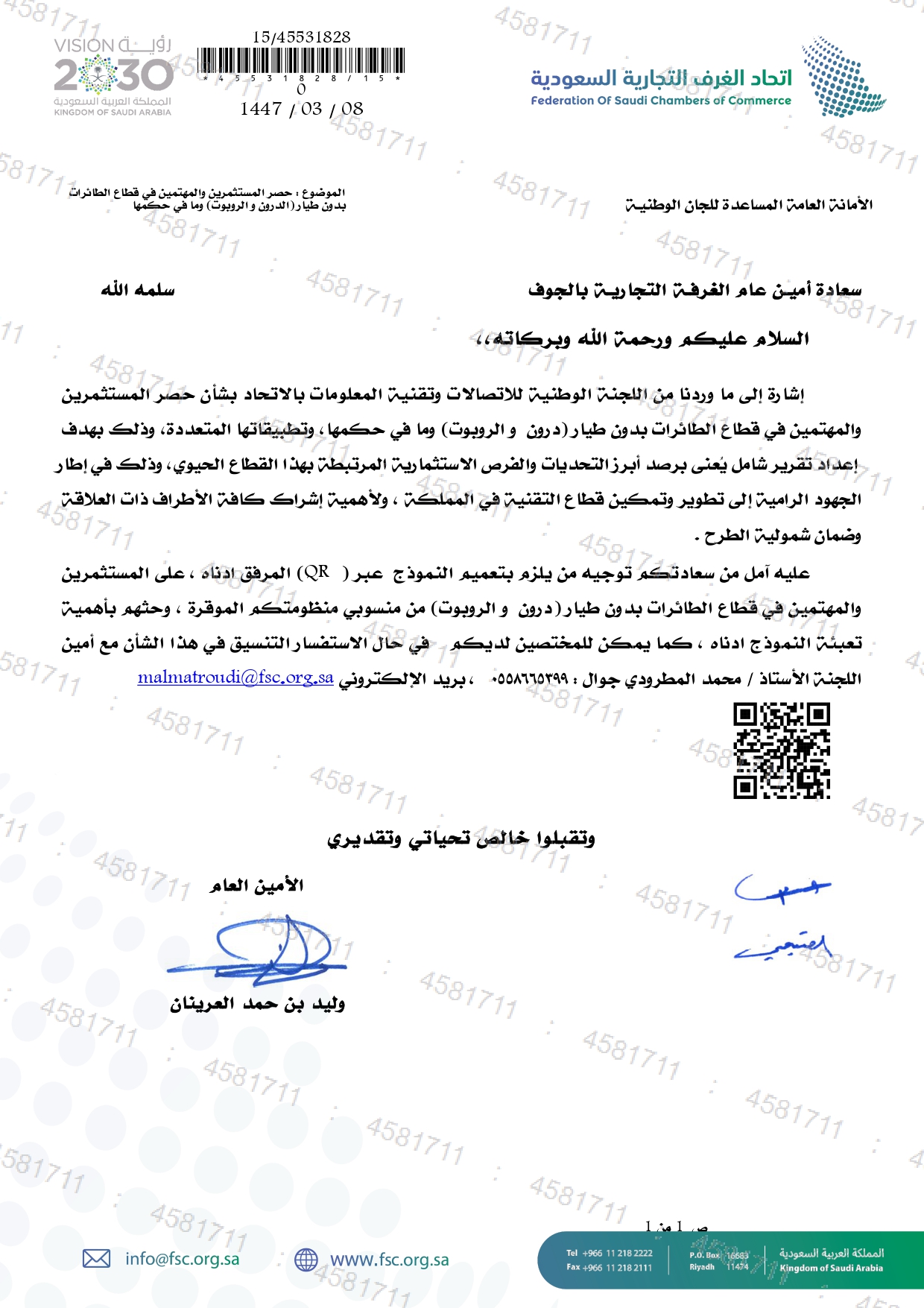 (العربية) استبيان حصر المستثمرين في قطاع الطائرات بدون طيار (الدرون - الروبوت) و ما في حكمها