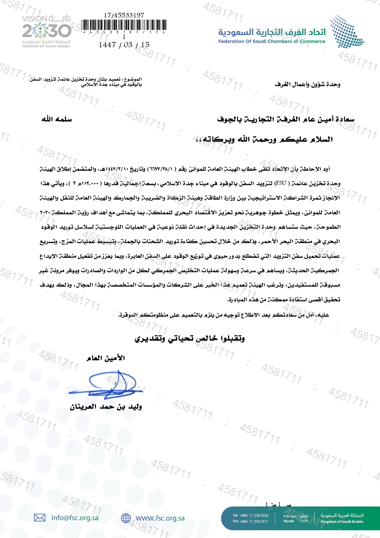 (العربية) بشأن إطلاق وحدة تخزين عائمة لتزويد السفن بالوقود في ميناء جدة الإسلامي