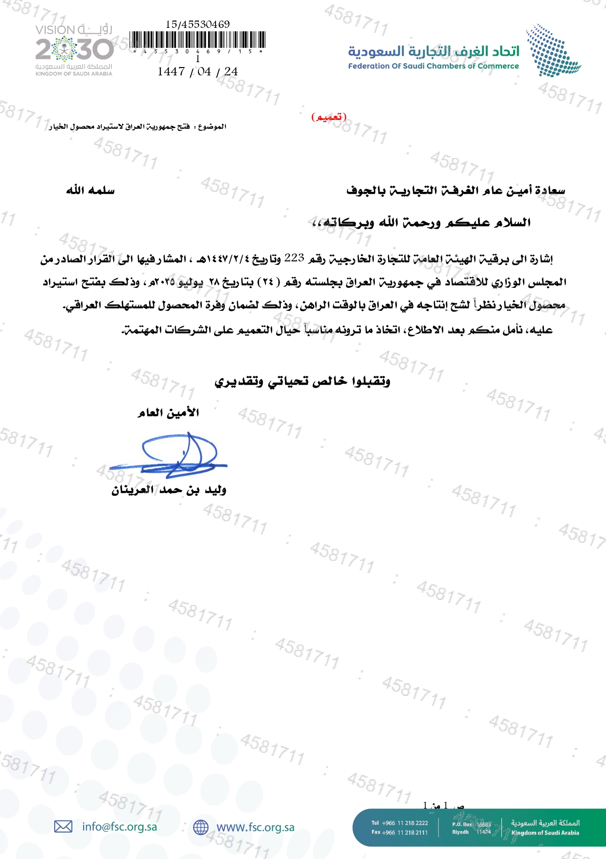 (العربية) فتح استيراد محصول "الخيار" من جمهورية العراق