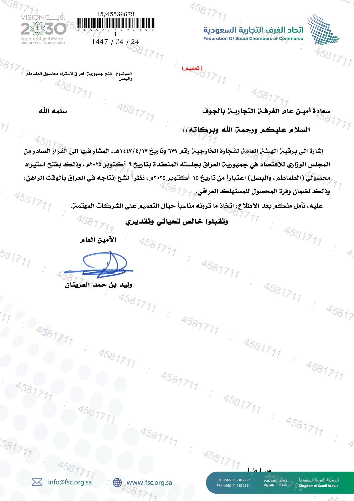 (العربية) فتح استيراد الطماطم والبصل من جمهورية العراق