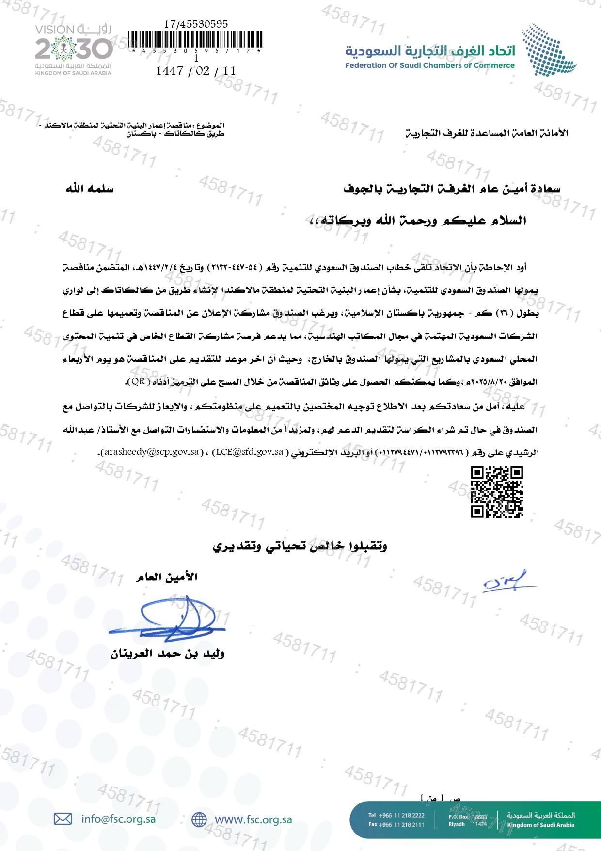 (العربية) بشأن مناقصة إعمار البنية التحتية لمنطقة مالاكند - طريق كالكاتاك - جمهورية باكستان الإسلامية
