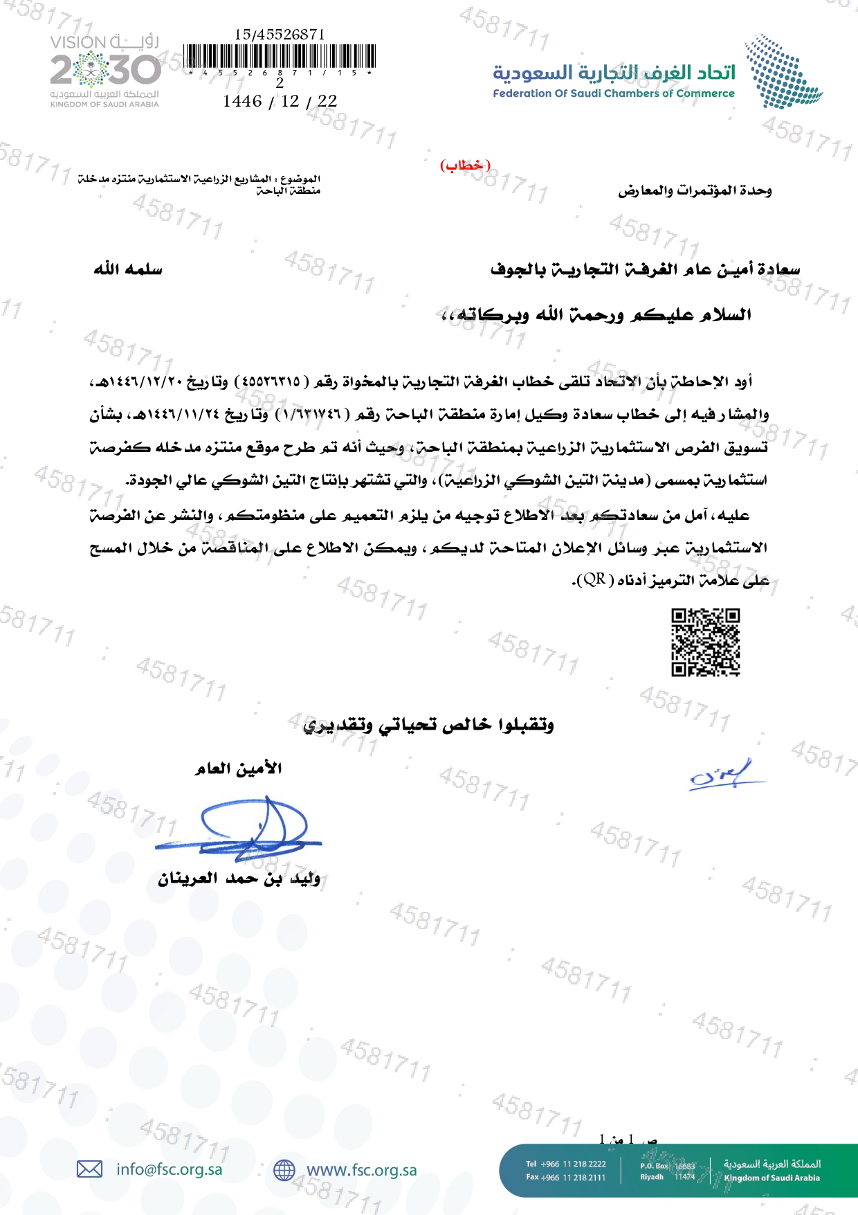 (العربية) بشأن طرح فرصة استثمارية زراعية بمنطقة الباحة