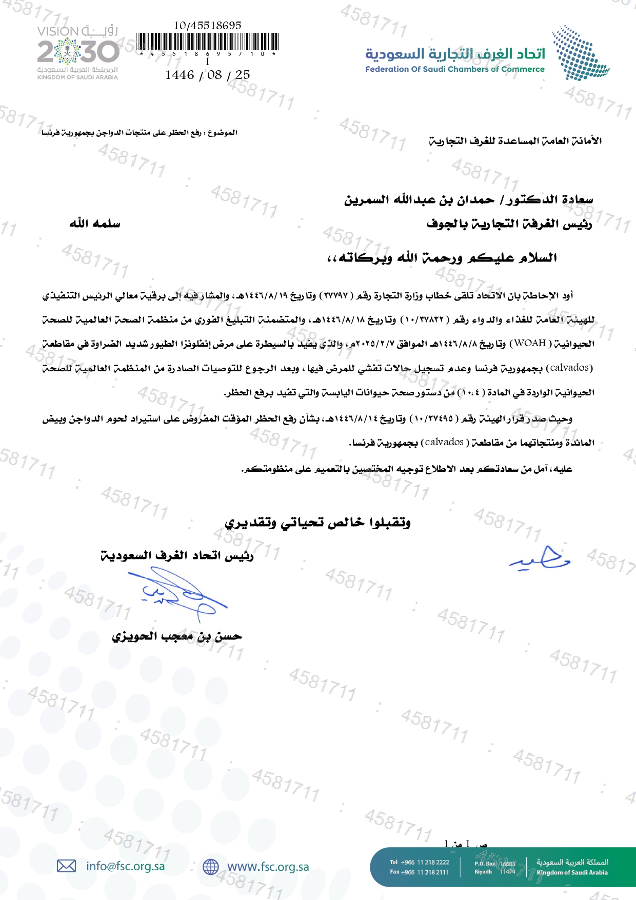 (العربية) رفع الحظر على منتجات الدواجن بجمهورية فرنسا