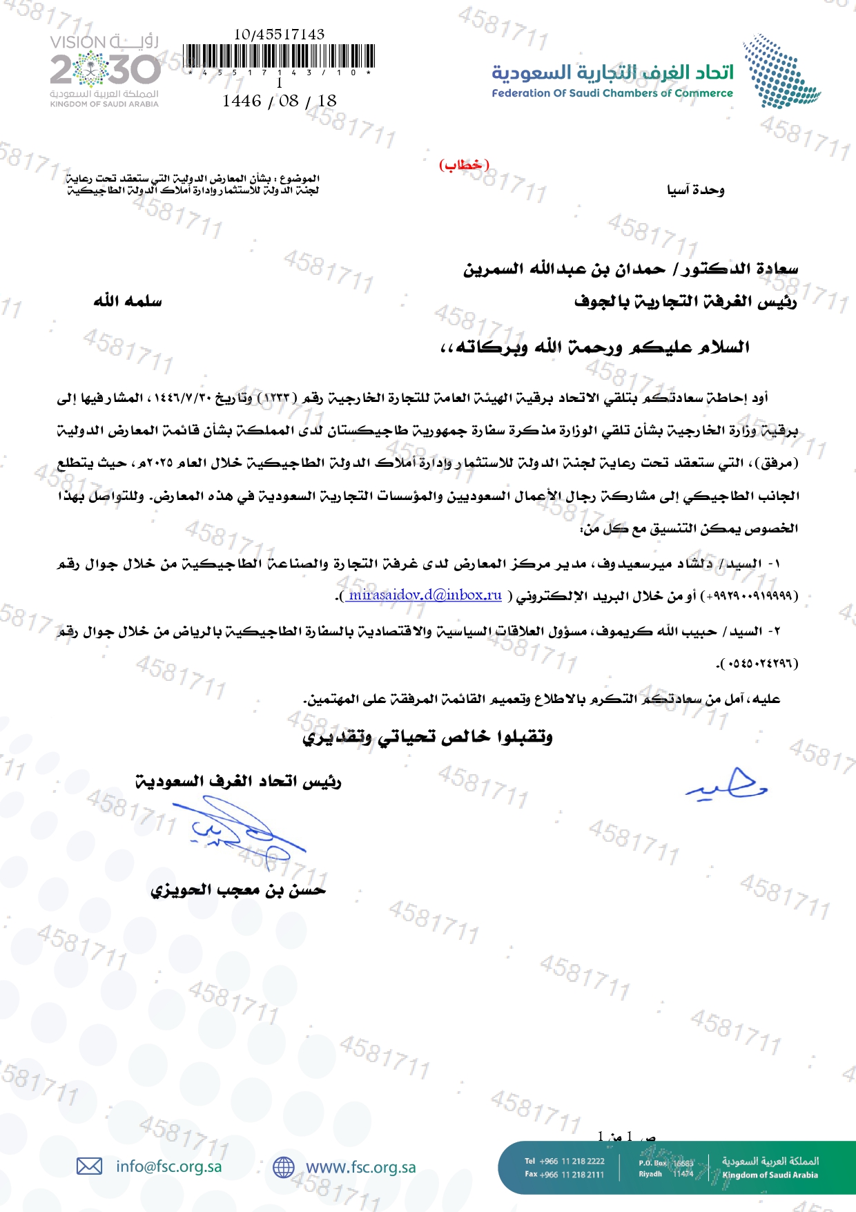 (العربية) بشأن المعارض الدولية التي ستعقد تحت رعاية لجنة الدولة للاستثمار وإدارة أملاك الدولة الطاجيكية