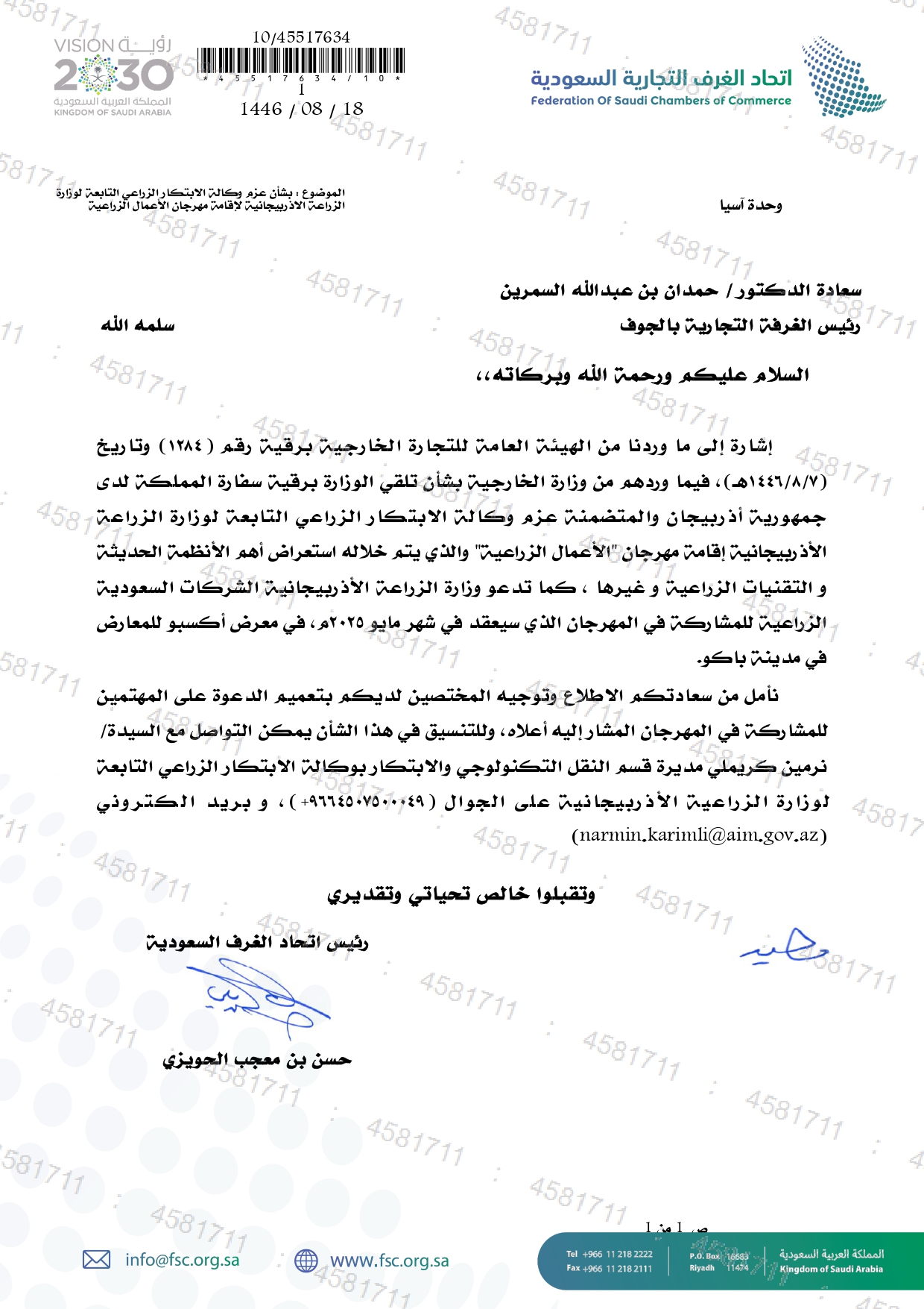(العربية) بشأن عزم وكالة الابتكار الزراعي التابعة لوزارة الزراعة الاذربيجانية لإقامة مهرجان الأعمال الزراعية