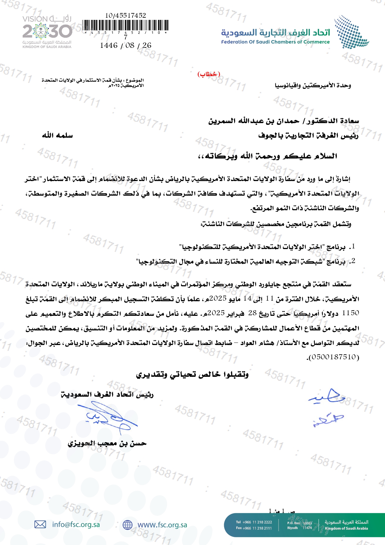 (العربية) بشأن قمة الاستثمار في الولايات المتحدة الأمريكية ٢٠٢٥م