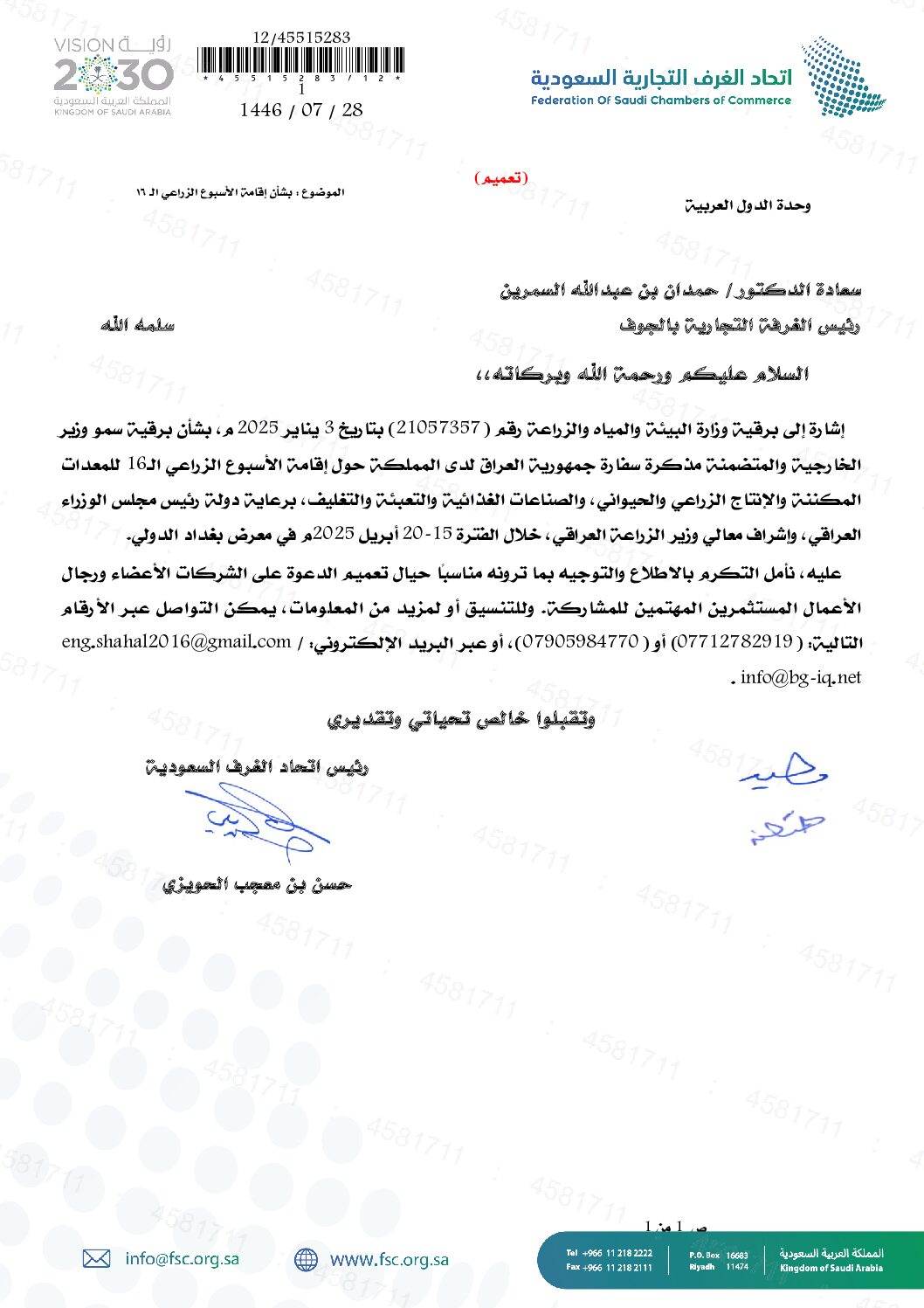(العربية) دعوة لحضور الأسبوع الزراعي السادس عشر - بغداد