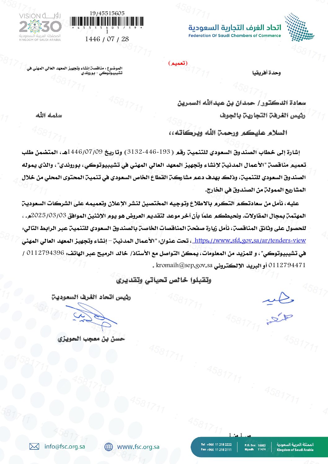 (العربية) مناقصة إنشاء وتجهيز المعهد العالي المهني في تشيبيوتوكي - بوروندي