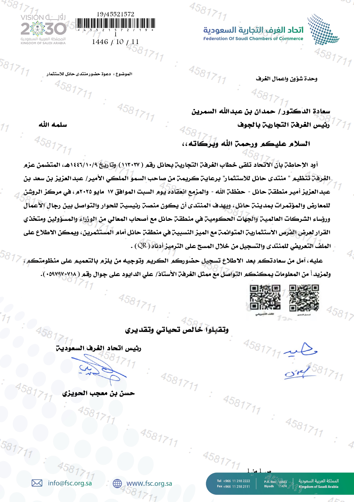 (العربية) دعوة للمشاركة في "منتدى حائل للاستثمار"