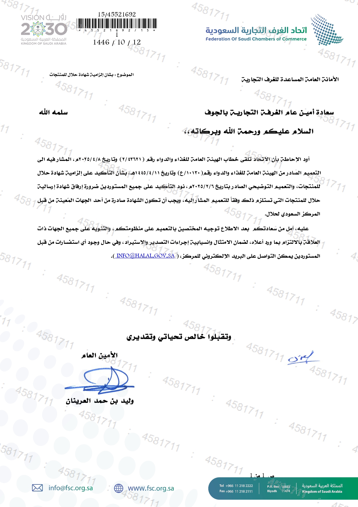 (العربية) بشأن إلزامية شهادة حلال للمنتجات