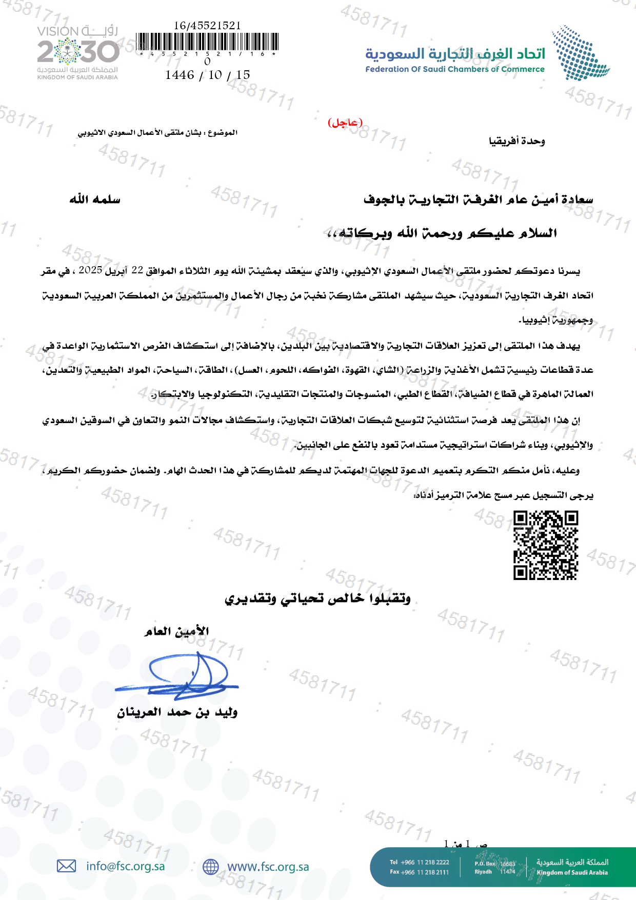 (العربية) دعوة للمشاركة في ملتقى الأعمال السعودي الإثيوبي