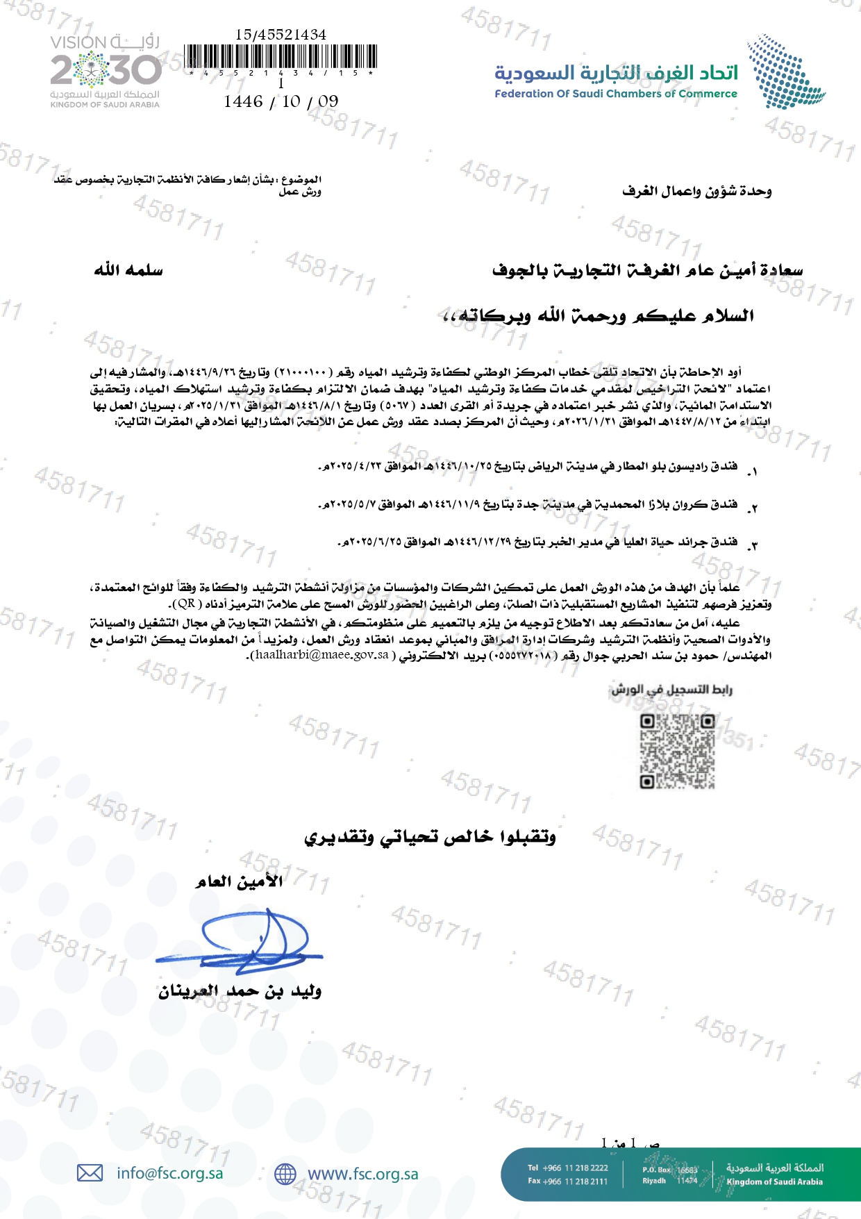 (العربية) بشأن إشعار كافة الأنظمة التجارية بخصوص عقد ورش عمل لمقدمي خدمات كفاءة وترشيد المياه