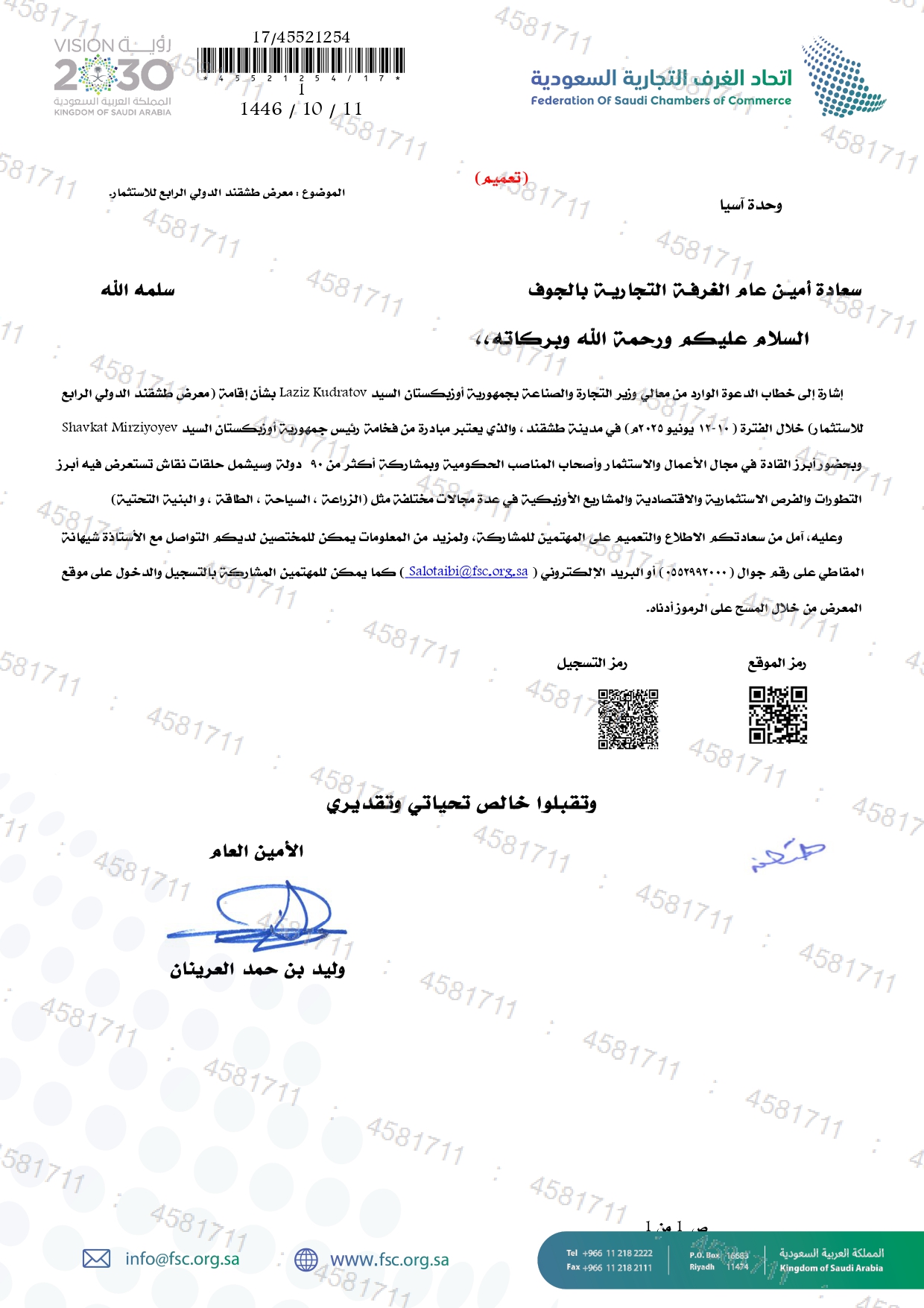 (العربية) دعوة للمشاركة في معرض طشقند الدولي الرابع للاستثمار