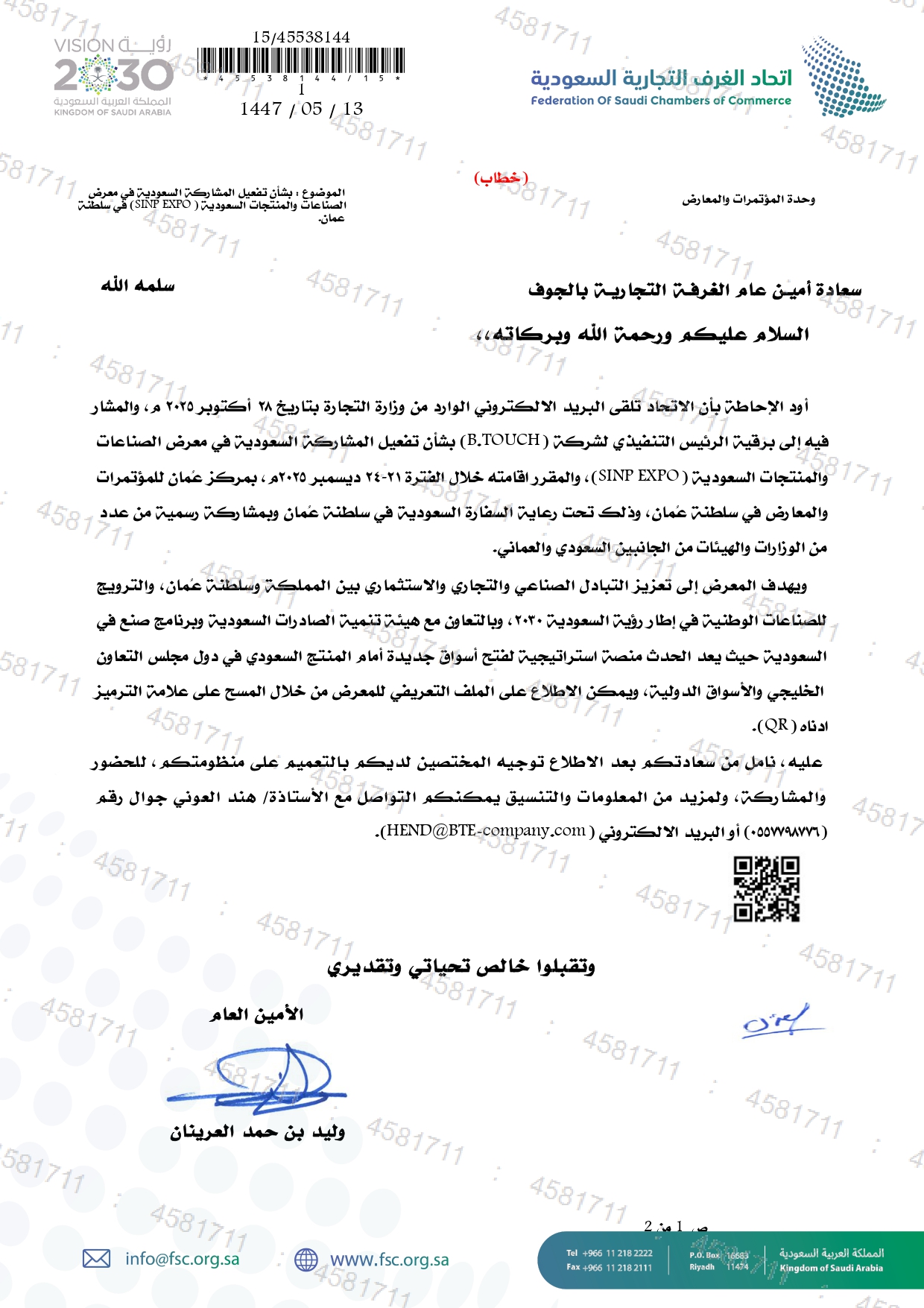 (العربية) بشأن تفعيل المشاركة السعودية في معرض الصناعات والمنتجات السعودية (SINP EXPO) في سلطنة عُمان