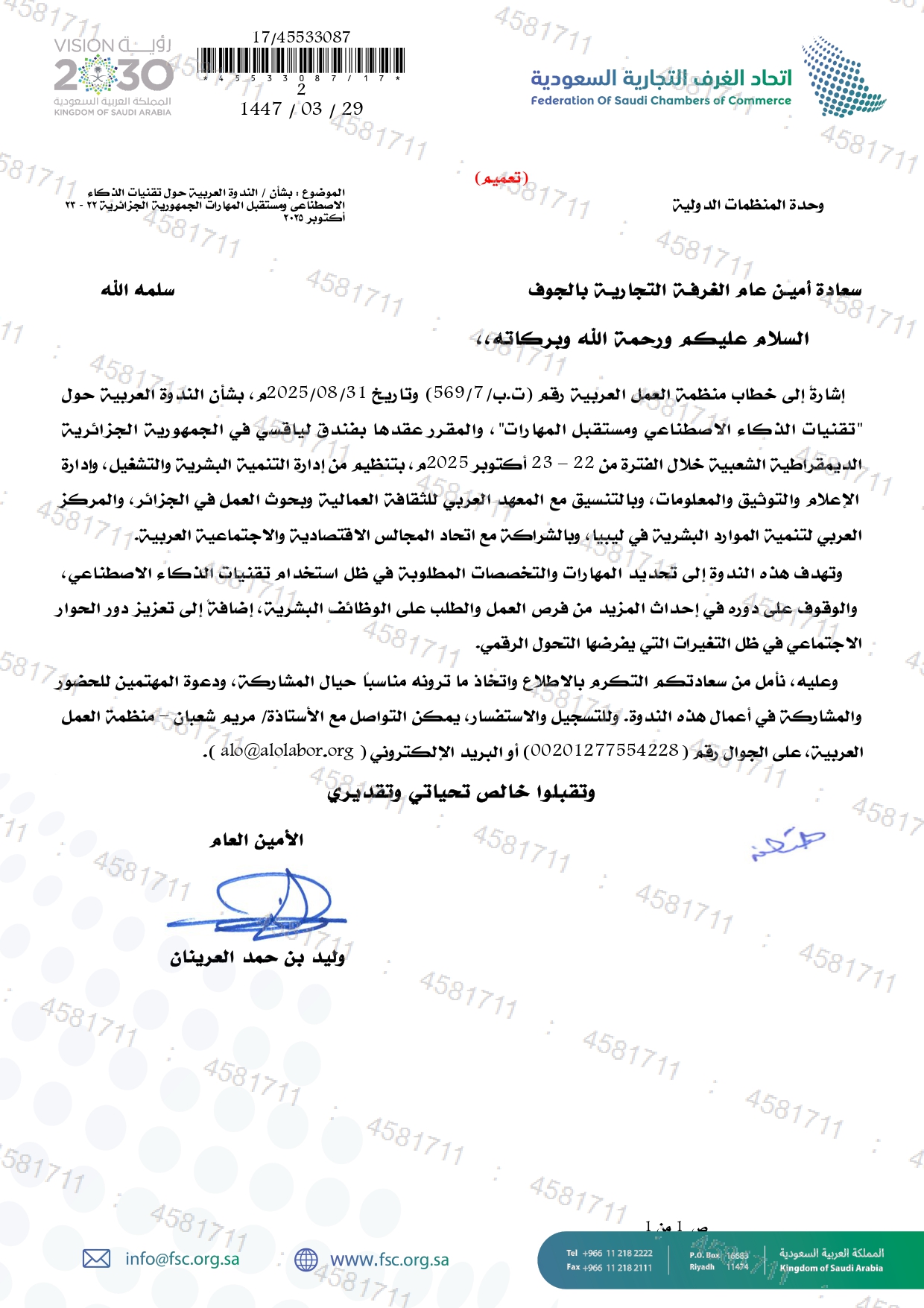 (العربية) بشأن الندوة العربية حول تقنيات الذكاء الاصطناعى ومستقبل المهارات - الجمهورية الجزائرية ٢٢ - ٢٣ أكتوبر ٢٠٢٥