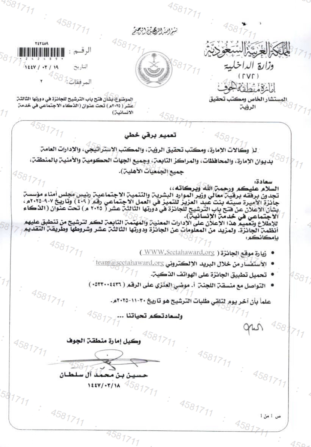 (العربية) فتح باب الترشيح لجائزة الأميرة صيته بنت عبدالعزيز للتميز في العمل الاجتماعي في دورتها الثالثة عشر