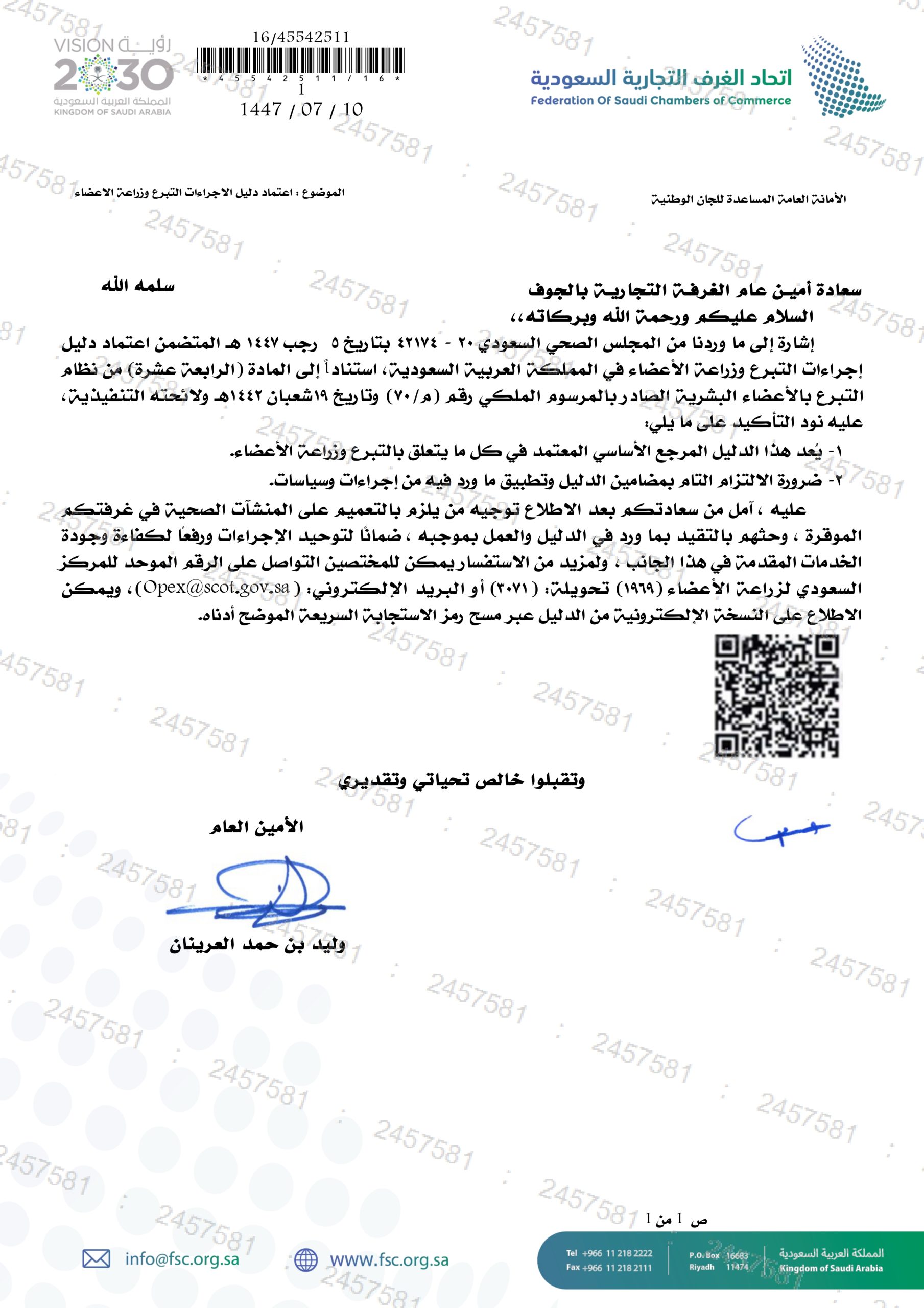 (العربية) اعتماد دليل الاجراءات التبرع وزراعة الاعضاء