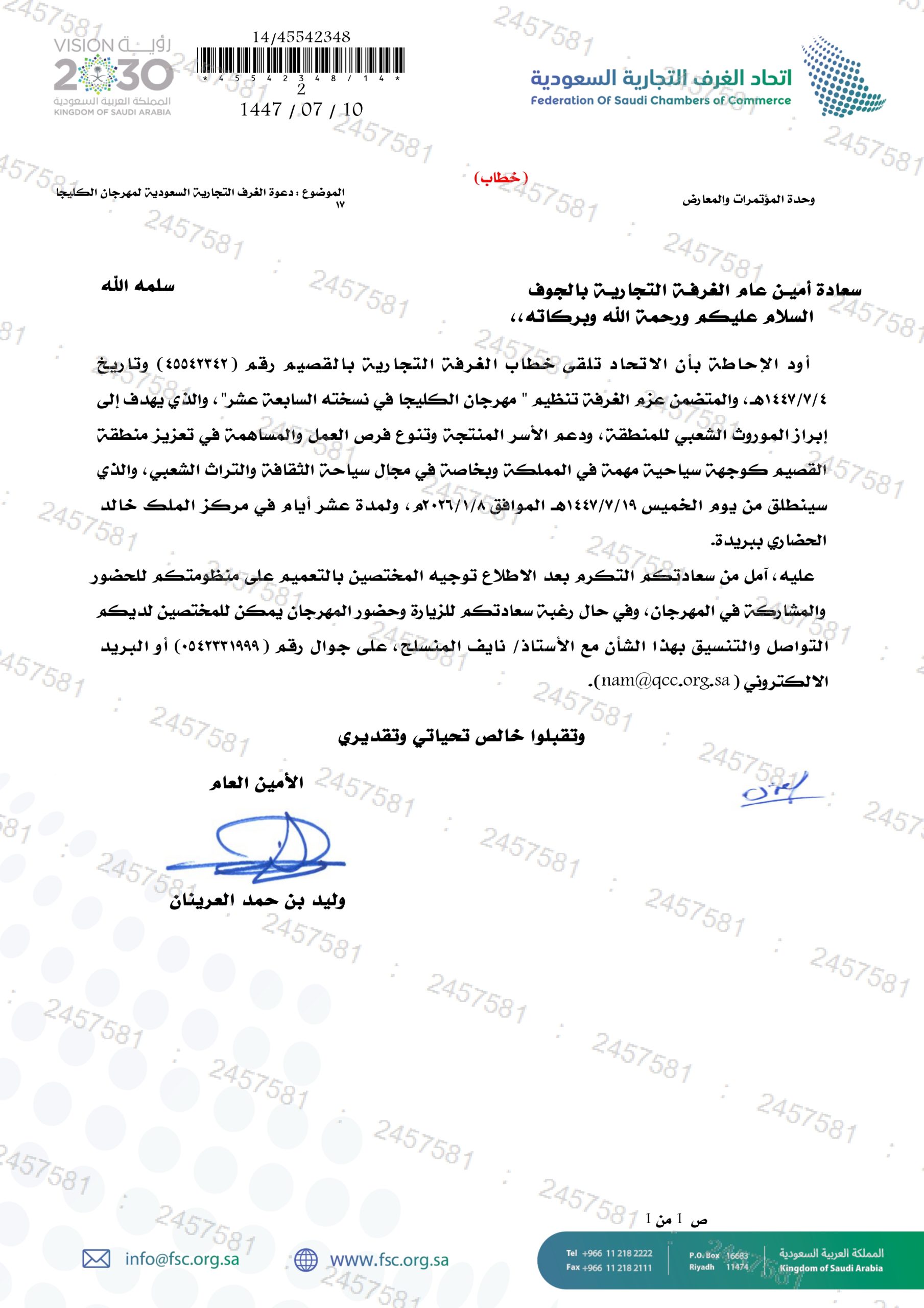 (العربية) دعوة الغرف التجارية السعودية لمهرجان الكليجا ١٧
