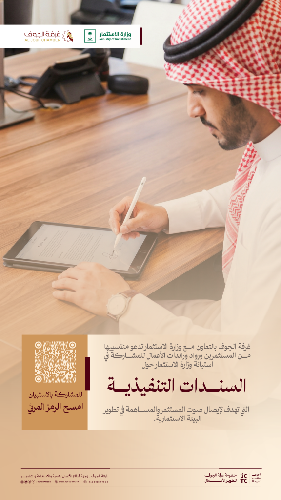 تدعو غرفة الجوف منتسبيها للمشاركة في استبانة وزارة الاستثمار